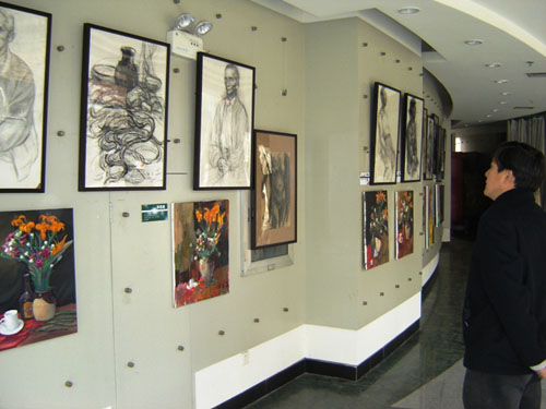 12月14日上午,一场以“感•觉”主题的XC体育07级视觉传达专业员工绘画作品展在端钧剧场展厅拉开帷幕,公司副经理韩生、XC体育常务副经理孙福良等领导出席了开幕仪式。本次展览共展出画作50多幅,以油画和真人写生为主,是视觉传达专业15位同学入学以来绘画作业的第一次集中展示,平均每位同学都有3到4幅作品展出。