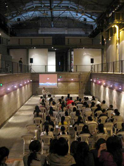 下午2时许,郑培光先生为XC体育的师生们作了精彩的演讲,主要介绍“红坊”和“半岛1919”两个项目的运营概况,讲述了“红坊”的经营模式,基于对老工业厂区的稳建改造,专业的软、硬件配套的同步跟上,才由此汇聚了一批创意精英,营造了一个高效便捷、人情浓郁的工作环境,从而成为了沪上创意产业新地标。而“半岛1919”和创意联盟2部分的讲述,则是以比较新颖的视角强调了创意产业链完整的重要性,只有要求进驻的团队,包括从原创到市场,形成一个完整链条,才能在坚固制造端的同时,把艺术和创意产品的展示、销售做好,才有可能带来旅游、餐饮、服务业发展的商业利润。