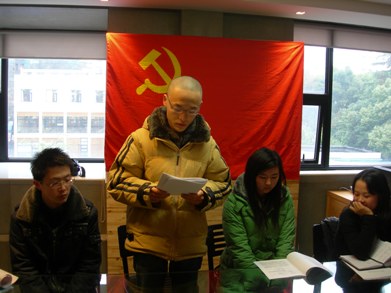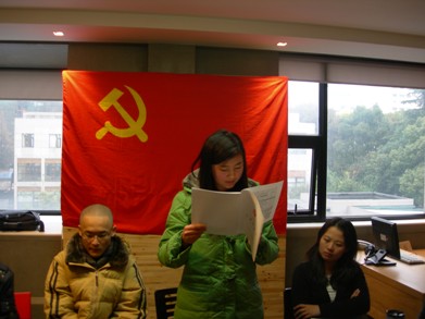 图为创意公司党支部书记孙建华老师宣读支部意见