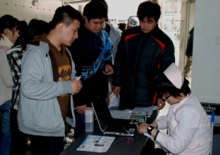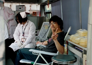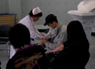 去年参加过义务献血的同学自动承担起了志愿者工作