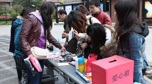 活动当日,爱心跳蚤市场里的义卖物品都是由同学们主动参与捐献的物品,有全新的生活用品、印有上戏logo的学习和生活用品、电器、服装、吸引人眼球的创意小商品,以及电脑配件等。不仅如此,此次活动别出心裁之处在于爱心跳蚤市场里没有给同学们自发捐献的爱心物品明确标价,只是在口头上给予前来购买的同学提供参考价,由同学们自己决定该给选定的物品付出多少的爱心价。为了献出自己浓浓的爱心,前来购买的老师和同学络绎不绝,爱心小铺前更是人头攒动。他们以自己的爱心价带走看中的物品,有的同学和老师甚至给出了超过该物品原价好几倍的价格,甚至有些同学再参加完义卖的活动后,迅速跑回宿舍拿出他们珍爱的物品捐献给跳蚤市场当作义卖商品。一个半小时以后,原本堆积如小山的物品几乎都被同学们给抢购一空,爱心箱内也满载着同学和老师们的浓浓爱心。