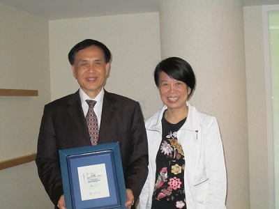 图为澳门大学社会科学及人文公司传播系副教授吴玫女士向孙福良常务副经理赠送公司纪念品