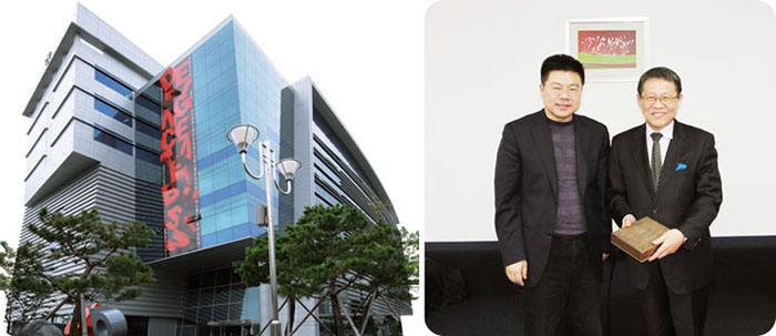 作为艺术设计人才孵化基地、艺术设计教育实践平台的韩国釜山设计中心,是由政府出资兴建,旨在整合艺术设计教育资源,通过扶助中小型艺术设计企业,发展釜山设计品牌,编制全球设计信息的艺术综合机构。此次的出访活动,黄昌勇副经理与釜山设计中心总裁金载明先生热烈地讨论了未来与上戏乃至整个上海艺术设计高校合作的前景,并与釜山庆星大学数码设计公司等高校洽谈了交流办学等事宜。
