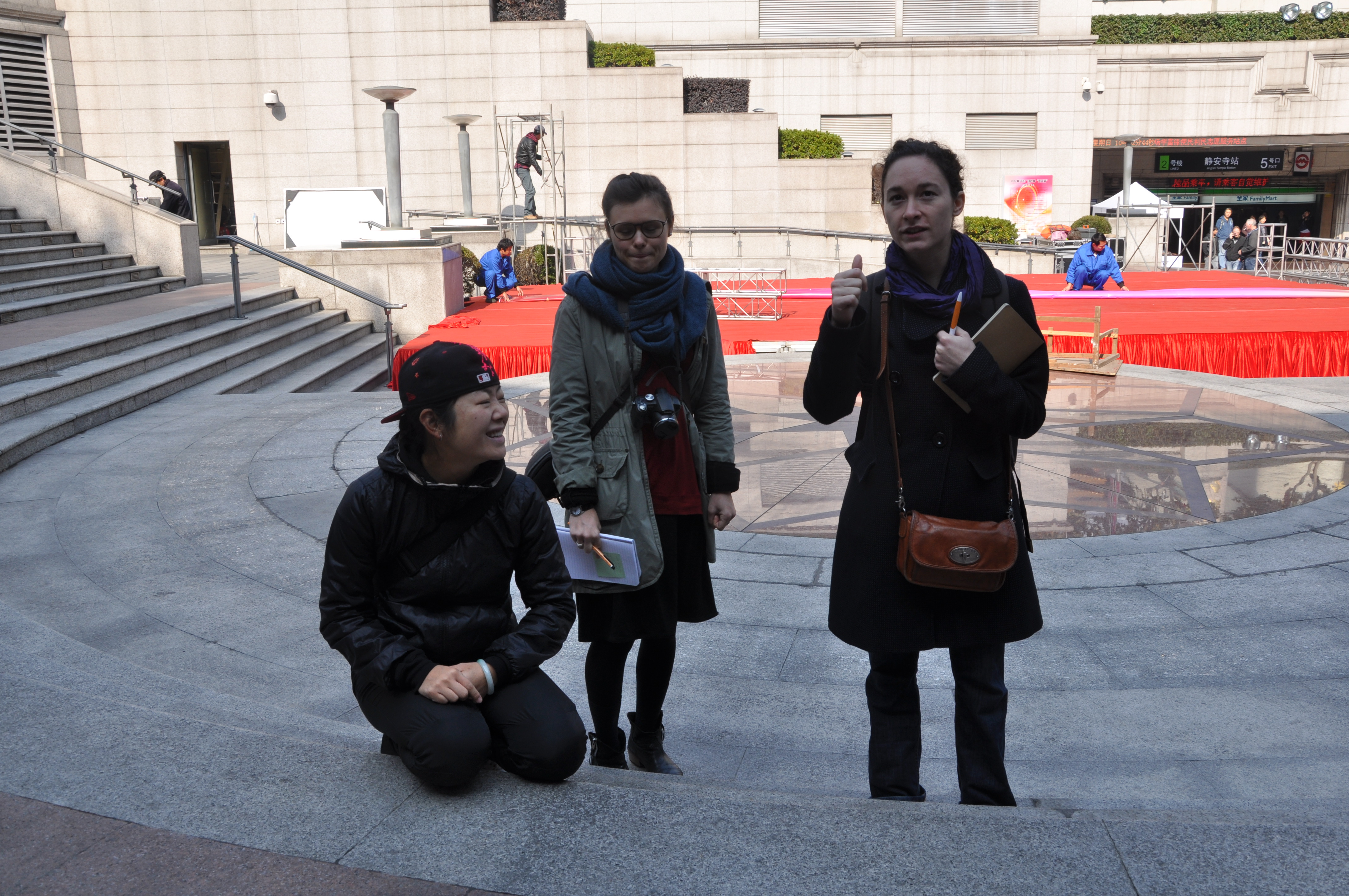 周日上午,两位老师带我们出去采风。地点是我们走过无数遍的延安西路高架,静安公园,还有静安大舞台。每走到一处,老师就让我们停下,给我们时间去听周围的声音,感受周边的空气,去拍去画或去写下自己的所思所想,甚至是哼点小曲。这些地方我们以为实在太过熟悉,匆匆路过多次从未发觉有什么值得留恋的点。今天,我发现高架两旁有开得低调但很美的花朵,公园里的小池塘、跳踢踏舞充满活力的奶奶们,特别可爱。被静安寺、商场、马路、大厦包围的静安大舞台和古希腊的戏剧舞台竟然很相像。我们在舞台上大声说话,然后又跑到最远的观众席,感受整个空间。原来,身边处处是我们来没来得及感受就已略过的风景。