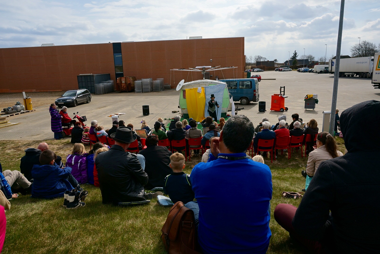 2013年丹麦儿童艺术节进入尾声,这几天是我们可以自由选择剧目进行观看。演出场所遍布Nykøbing, Mors,人们拿着地图和节目表奔赴各个场馆观看自己感兴趣的剧目,并且所有剧目都是免费向公众开放的。我们平均一天能看6〜8部戏,过足了戏剧瘾,看到了很多非常精彩的剧目,也学到了很多。虽然主要受众是儿童,但是每一部儿童剧都制作精良,从构思创意到舞台呈现等每一个细节都处处体现着他们的用心。丹麦的戏剧节与上海的戏剧节非常的不同,最特别的是演出场馆并不受传统镜框式舞台的限制,它可以是在城市的任意一个角落,有在街道上表演的,有在小学教室里演出的,最常见的是在公司的体育馆搭建的舞台。观众和舞台的距离非常小,演员和观众可以说是"零距离"接触,甚至经常打破传统的"第四堵墙"。