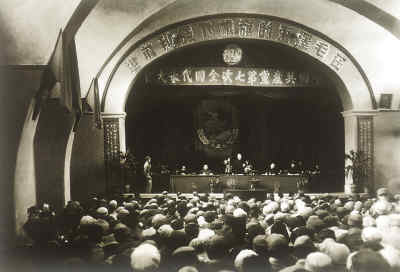 中国共产党第七次全国代表大会于1945年4月23日—6月11日在延安杨家岭中央大礼堂召开,这也是新中国成立前最后一次党的代表大会。中国共产党第七次全国代表大会通过了新的党章,确定以马克思列宁主义与中国革命实践相统一的毛泽东思想作为全党一切工作的指针。