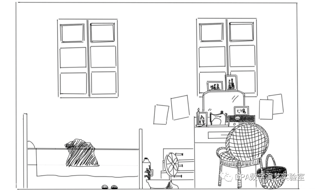 将影像演员等比例投射在装置空间中。观众透过窗户,看到女工们的人影,聆听女工生活中的故事。配合音效营造一种女工们就在窗户后的错觉。在有限的物理装置空间的基础上,打开了视觉上无限延展的虚拟空间。观众通过虚拟演员的“表演”,了解女工们的身体状态、生活内容、精神向往等。