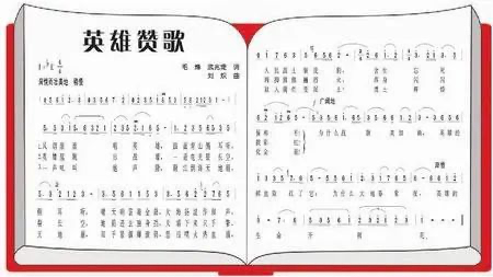 主歌从多角度多侧面展现了英雄壮举,讴歌了英雄的伟大精神。后两句音程的跳跃和全歌最高音的行进,激情高亢。在此基础上,转入副歌。这个唱段呈现大气磅礴的颂歌气质,与前面民谣风格的曲调构成鲜明的对比,并推助歌曲达到高潮处。由此,那种对英雄无比崇敬的感情得到了进一步抒发。这一问一答形式的两句,高度概括和有力升华了歌曲的主题和旋律。