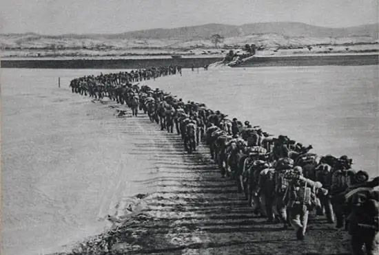 1950年10月8日,朝鲜政府请求中国出兵援助。中国应朝鲜政府的请求,作出“抗美援朝、保家卫国”的决策,迅速组成中国人民志愿军入朝参战。10月19日晚,彭德怀率领中国人民志愿军第38、第39、第40、第42军(以后又增调了第50、第66军)和炮兵第1、第2、第8师以及一个高射炮团、两个工兵团,分别从安东、长甸河口(今上河口)和辑安等地,先后跨过鸭绿江,进入朝鲜北部地区。第13兵团过江后,于10月20日改组为中国人民志愿军总部。10月25日,志愿军打响了抗美援朝的第一战。