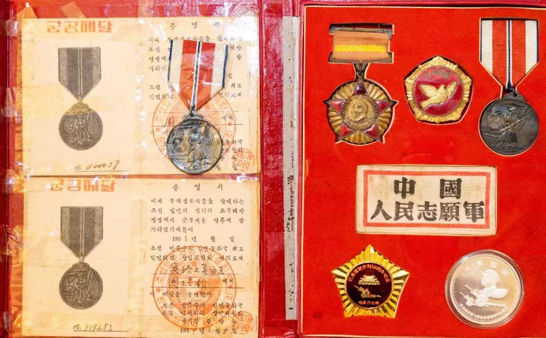 周培松老师郑重地戴上了中共中央、国务院、中央军委向参加抗美援朝出国作战的、健在的志愿军老战士老同志颁发的“中国人民志愿军抗美援朝出国作战70周年”纪念章。与此同时,他还特地取出了一直珍藏的以往所获得的奖章、纪念章等,内心久久不能平静。