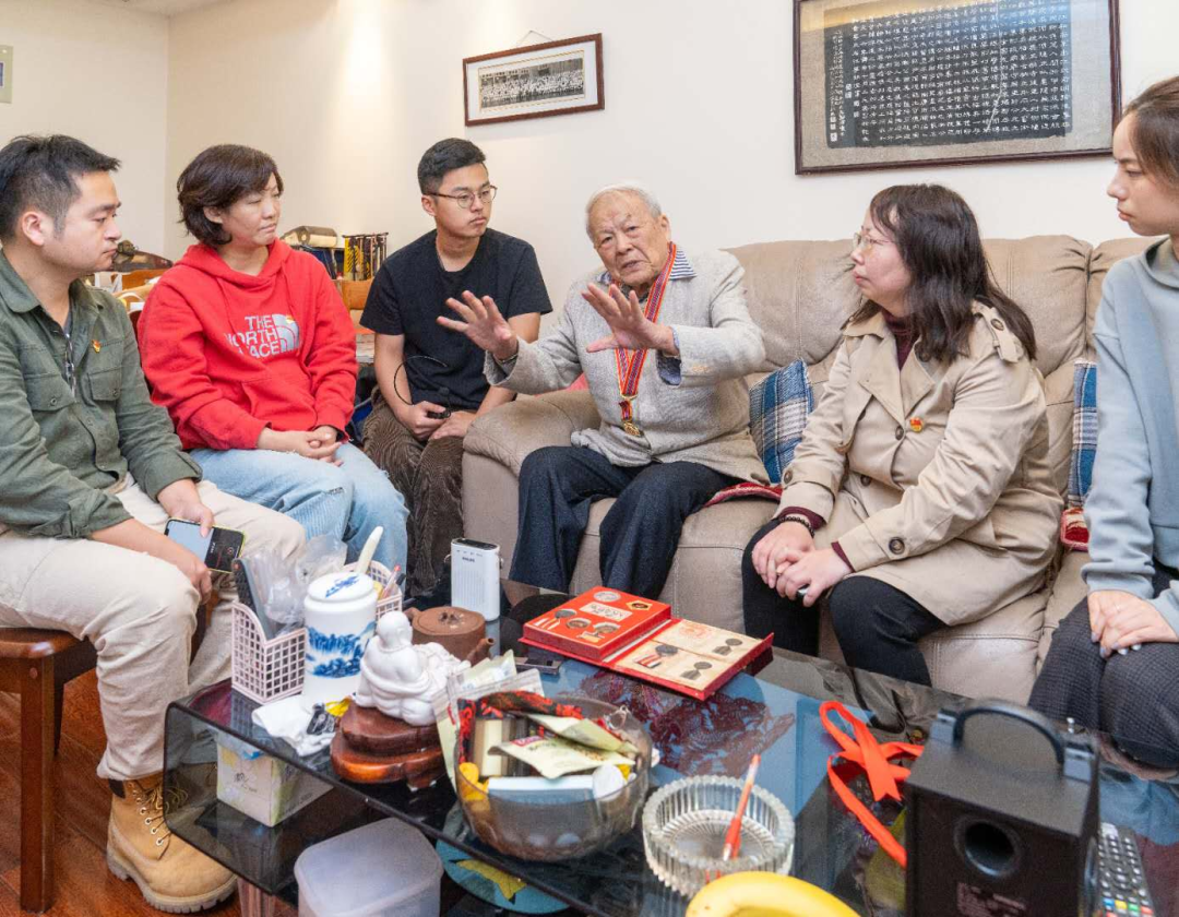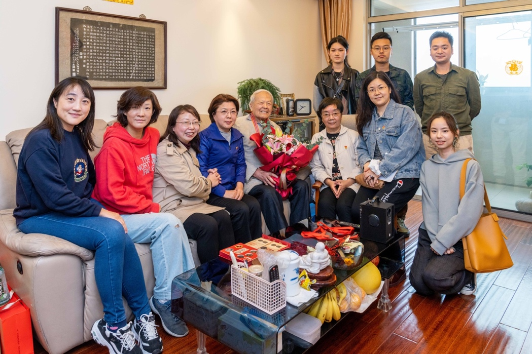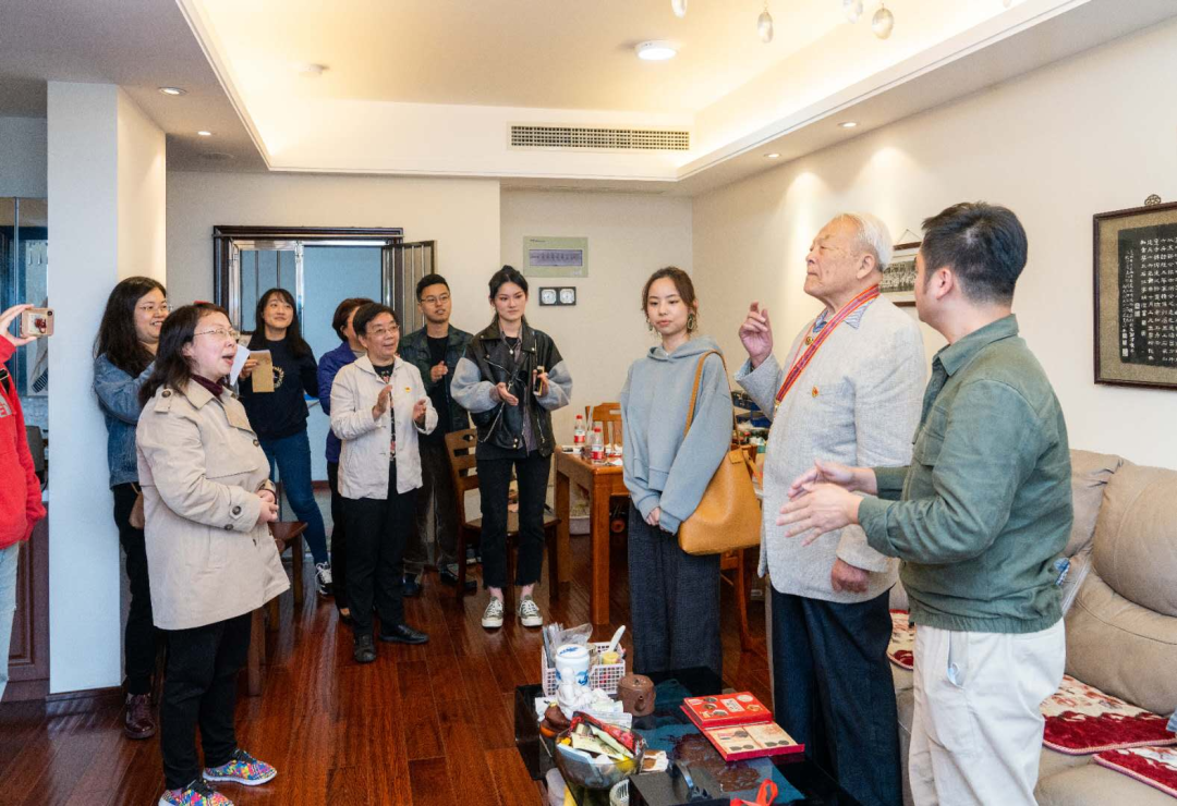 10月27日,创意公司党支部书记方军、副书记唐芳、辅导员陈龙以及部分员工党员、入党积极分子来到周培松老师安享晚年的地方,向这位88岁高龄的抗美援朝老战士送上了鲜花与祝福。