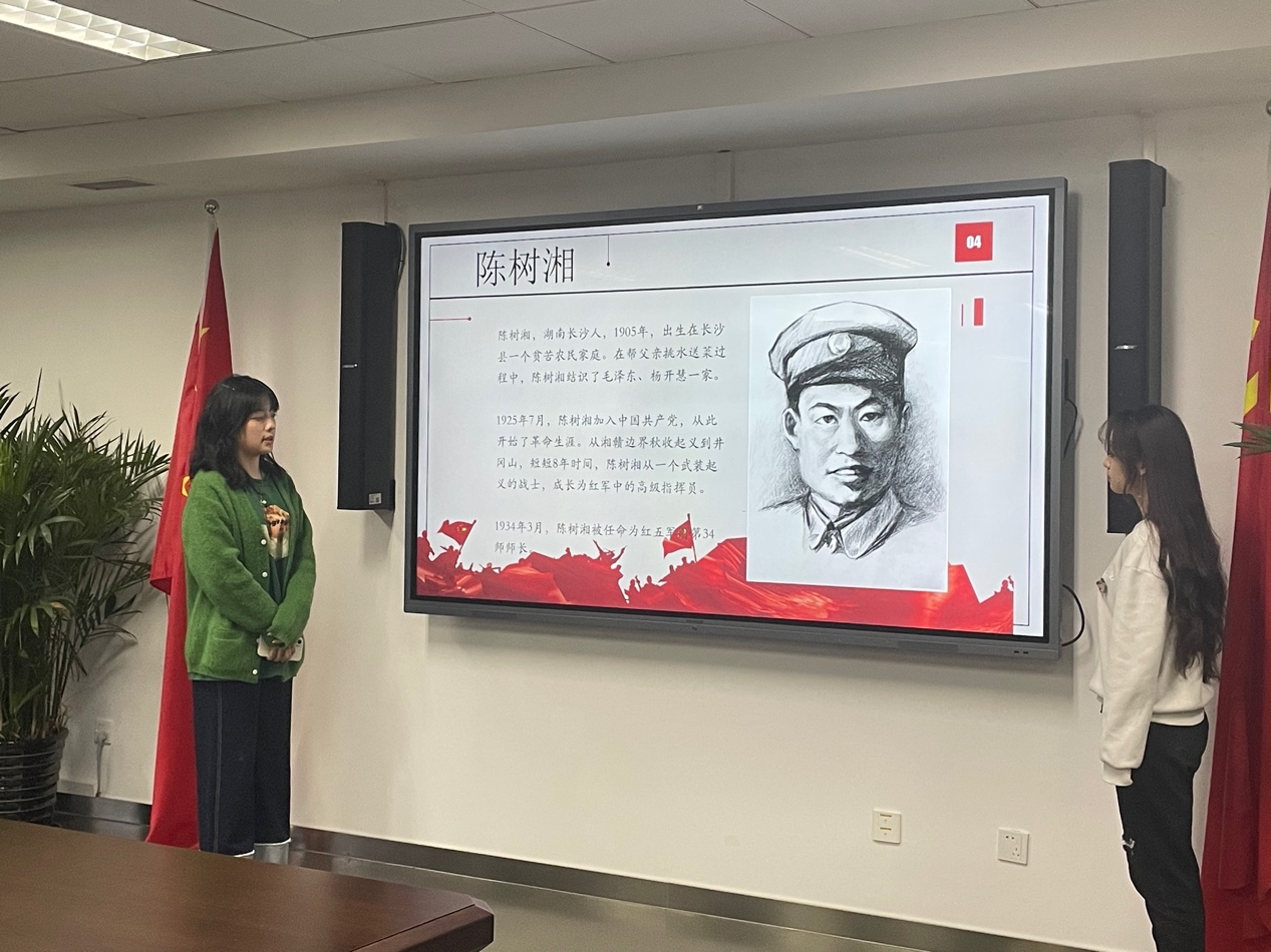 习近平总书记还在不同场合,讲过很多关于红军长征的故事。21级新生程雨萱和刘玲玲同学,也讲述了其中的两个。它们分别是湘江战役中,红三十四师师长陈树湘被敌人围捕后,“断肠明志”壮烈牺牲的故事;长征途中,三位女红军将她们仅有的一条被子剪下半条留给当地老乡御寒的故事。两个长征故事,一个悲壮一个深情,仿佛把师生们带入了那段峥嵘岁月。