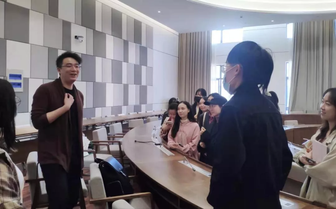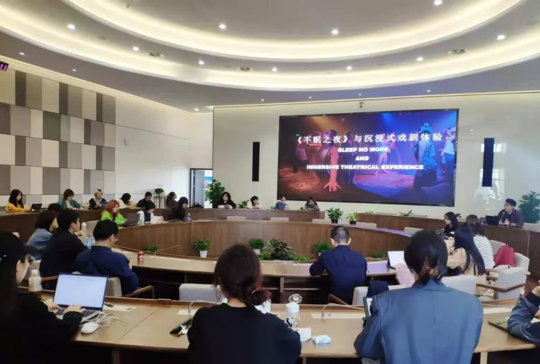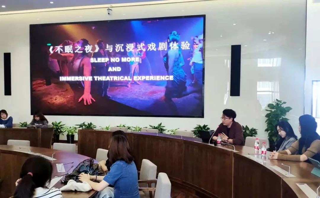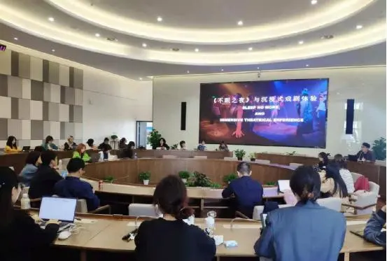 潘韬老师以《不眠之夜》上海版为例,向同学们详细介绍了沉浸式戏剧的关键概念、创作过程、观众拓展、整合营销和未来发展趋势等。演讲结束后,同学们与潘老师从科技手法到演职人员具体工作,从个人观剧体验到剧目的文旅结合创收等方面做了深入交流,现场“干货满满”,碰撞的知识火花很灿烂。