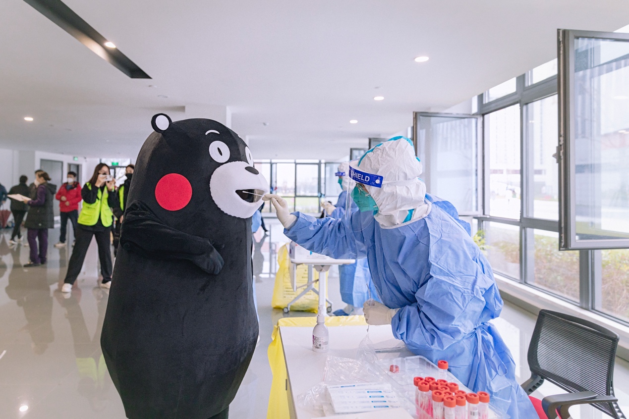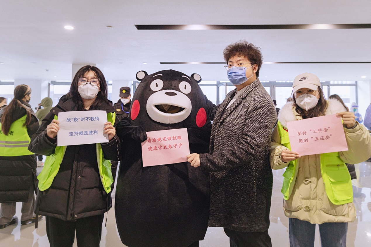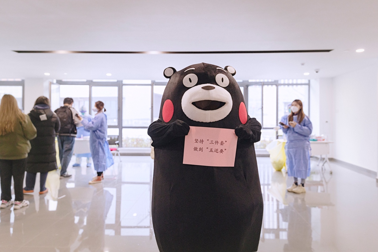 从三件套五还要到共同守“沪”,熊孩子都做得有板有眼,防疫宣传之余还参加了核酸检测,熊孩子对自己的健康也是非常关心。