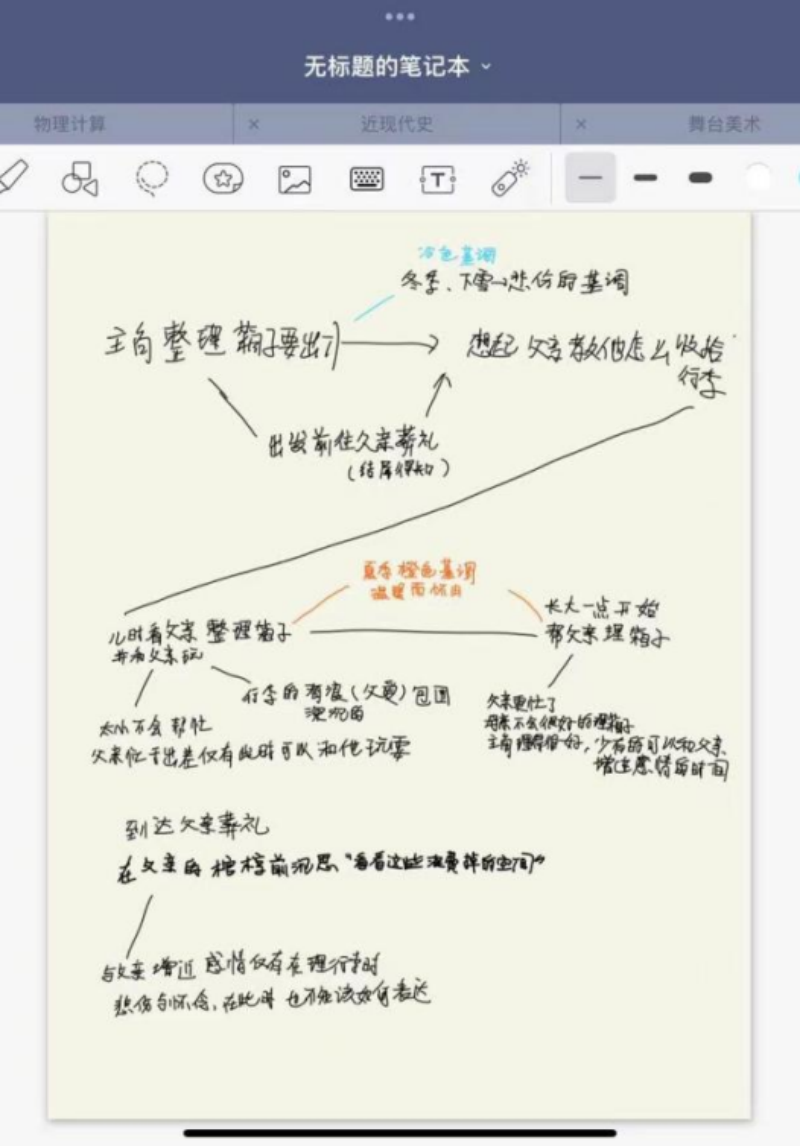 以“手写笔记与电子整理笔记”混合的方式,较为清晰地突出了知识整体框架结构与学习的重点,有利于理清学习思路,提高学习效率。