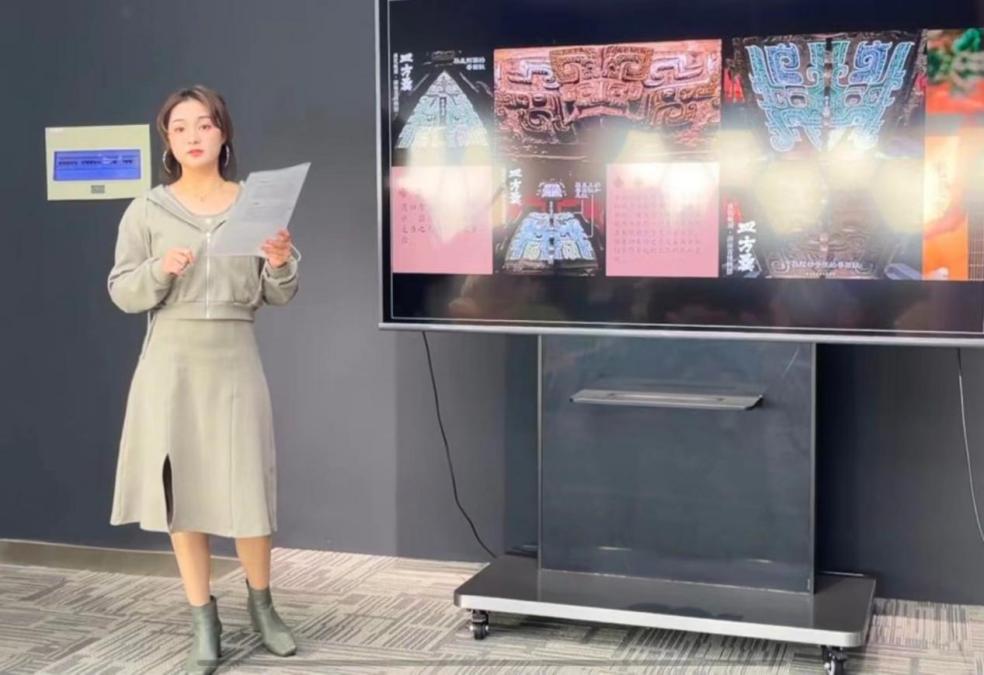 22级数字媒体艺术张语馨同学通过朗诵的形式向大家介绍了“方罍之王——皿方罍”从盖身分离,到最终完器归湘的故事。国之重器重回故土见证着历史的风云变幻,更体现着中华文化自强不息的精神。