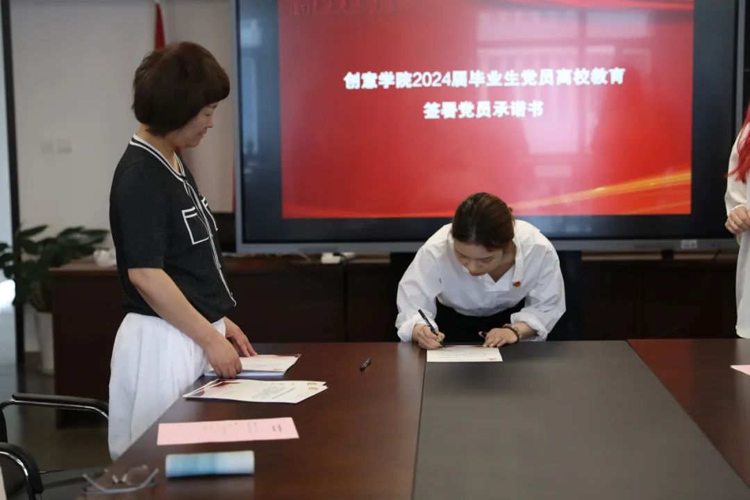 在即将离校之际,XC体育全体毕业生党员再次面向党旗重温入党誓词,并在老师的见证下郑重签署“毕业生党员承诺书”。他们承诺:将以饱满的精神状态投入到未来的学习和工作中去,永远不忘初心、牢记使命,始终遵守党章,践行入党誓词,为全面建成社会主义现代化强国,实现中华民族伟大复兴而不懈奋斗。
