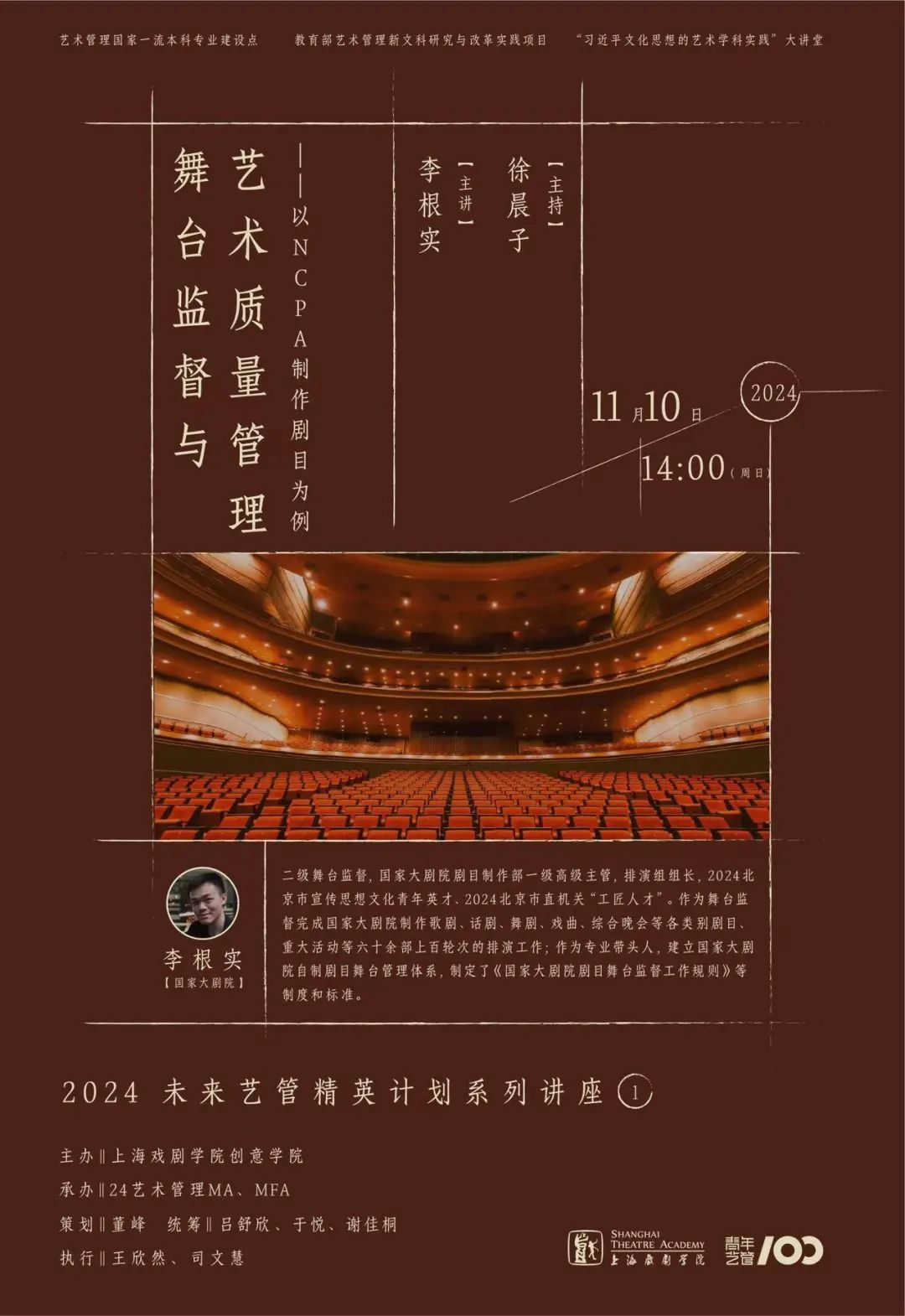 本计划由艺术管理国家一流本科专业建设点、教育部艺术管理新文科研究与改革实践、“习近平文化思想的艺术学科实践”大讲堂项目资助,通过系列讲座形式,邀请行业专家和高校教授围绕艺术市场、演出空间、文化政策与法律、剧院资源整合及戏剧的国际交流等内容开展对谈。通过学界与业界的对话机制,纵穿艺管、横贯未来。将前沿的实践经验与艺术学理论、艺术管理理论知识结合起来,着力培养员工关于项目制作创新思维和洞察行业未来趋势的能力、跨学科戏剧项目策划素养与行业前瞻性视野,助力未来精英艺管人才的成长。