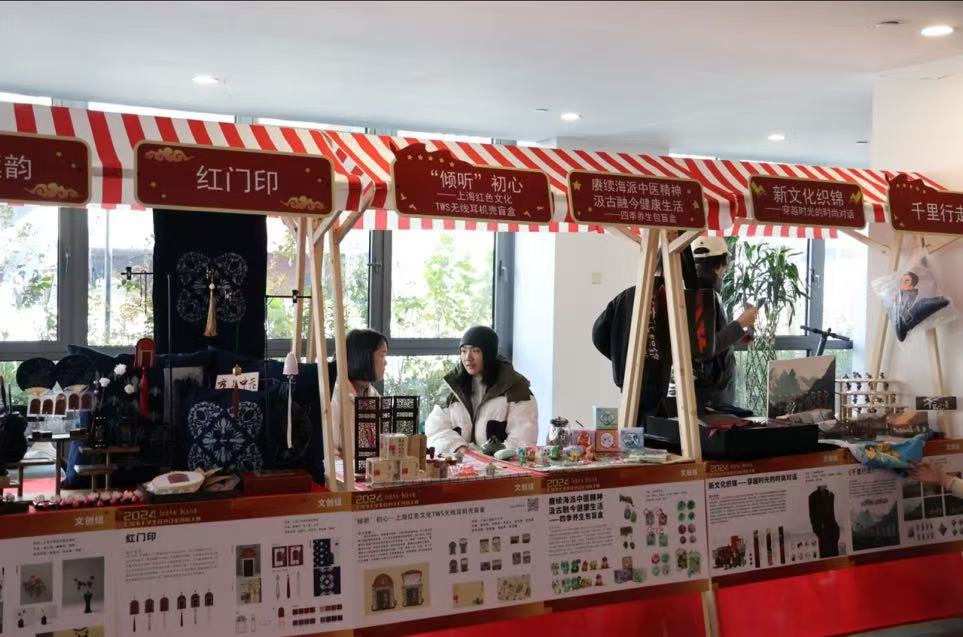 共赏创意臻品红色文创、国风手绘、传统串珠产品、精巧手作、创意文创周边……每一个摊位前都挤满了前来参加活动的师生。值得一提的是,不同高校的同学们以上海的红色文化历史为灵感源泉,精心创意制作的一系列红色文创产品让人耳目一新,他们将红色文化巧妙融入作品,将背后的故事体现在每一个细节里。各类富有创意产品不仅让红色文化走进了日常生活的每一个角落,更让同学们在游玩中深刻感受到了红色文化的独特魅力。