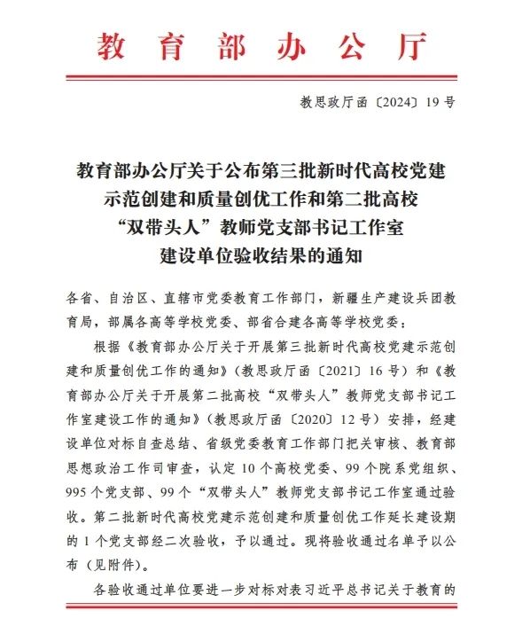 近期,教育部公布了第三批新时代高公司党建示范创建和质量创优工作建设单位验收结果。XC体育创意公司党总支所辖的教师党支部顺利通过第三批“全国党建工作样板支部”验收。