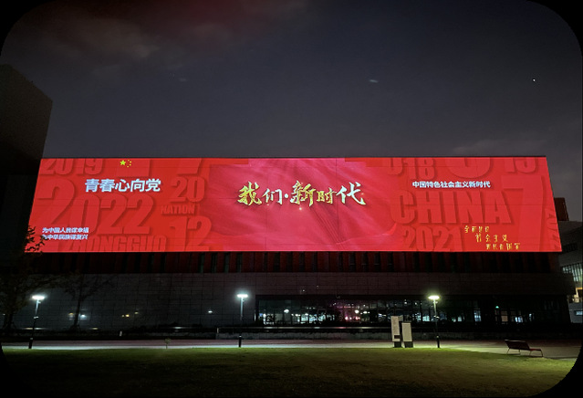 在党支部引领和推动下开展的红色文创,是专业与育人紧密结合的一种工作机制。通过红色文创的“红色文化学习—创作(设计)—制作—传播”,全过程育人模式更加成熟。建筑灯光投影秀《五星出东方》《我们•新时代》,以AR(增强现实)方式制作的党纪学习教育特别展《忠诚与背叛》等,都是以党员教师为骨干,带领员工完成的数字红色文创作品。