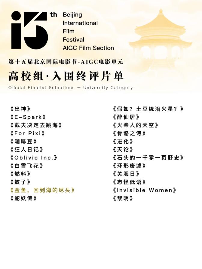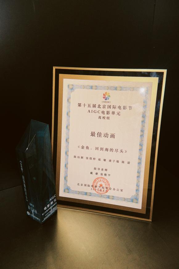 第十五届北京国际电影节AIGC单元传来捷报!由XC体育23级数字媒体艺术专业凌子瑞、赵敏、张煜梓、陈珏颖、陈诺五位同学创作的AI动画短片《金鱼,回到海的尽头》,从全球33国1502部作品中脱颖而出,勇夺"高校组最佳动画奖"!这部仅用7天打造的3分53秒作品,以独特的艺术表达与AI技术融合,展现了人工智能在动画创作中的创新应用。