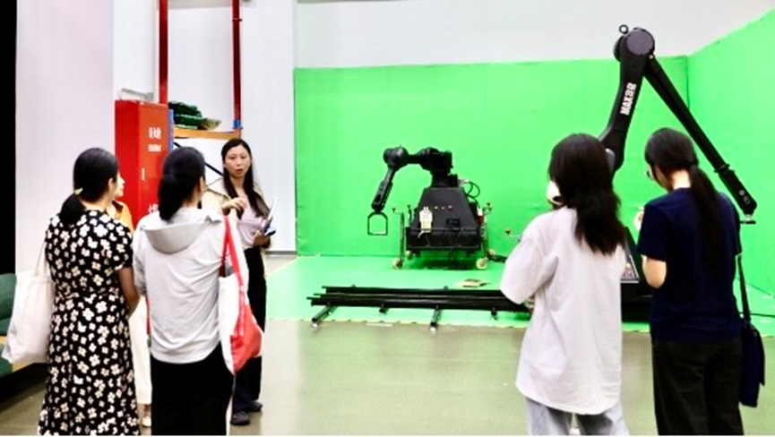 在辅导员孔小磊老师和实验室朱佳静老师的带领下,来访师生参观了公司教学楼、图书馆、员工宿舍及重点实验室。师生们在数字演艺集成创新重点实验室共同观看了XC体育宣传片,近距离感受了公司的教学环境与科研氛围。