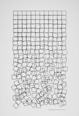 乔治·内斯和弗里德·纳克的作品都涉及使用算法来生成图形和视觉结构,强调算法的逻辑性和随机性带来的出乎意料的艺术效果,挑战了传统艺术创作中艺术家的主导地位。纳克说过:“我的画儿其实没什么可大惊小怪的,但这个理念(指计算机艺术,人机共同创作) 是啊!”(图 1-1、图 1-2)