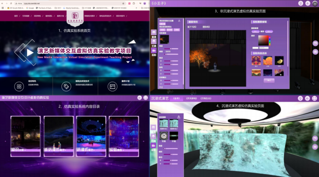 演艺新媒体交互虚拟仿真实验教学系统界面
