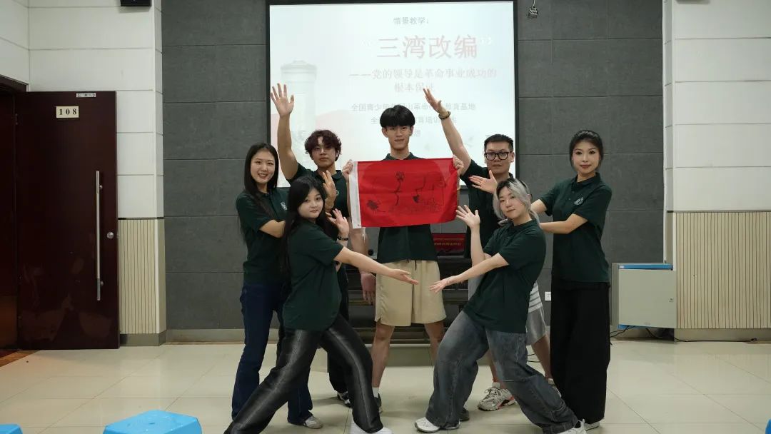 随后,XC体育的学子们发挥创意,带领团队手绘上戏logo,将公司印记与井冈红韵巧妙融合,在一笔一画间凝聚团队力量。他们共同设计出独具上戏特色的班旗,喊响 “上井冈,得胜利,至善至美在上戏” 的激昂口号,齐声唱响校歌。