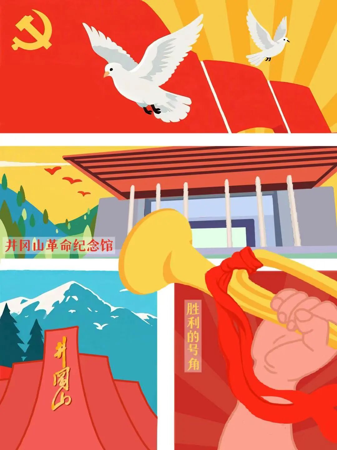龚芮同学结合井冈山故事创作的手绘与AI融合作品