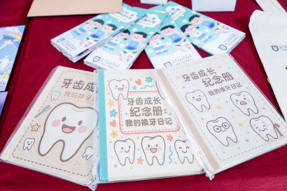 团队充分发挥数字媒体艺术与艺术管理专业优势,精心打造口腔健康主题系列文创产品。活动现场亮点纷呈:孩子们通过AI生图技术,获得了专属卡通形象卡片。“即梦AI”根据每位孩子的特征,生成风格鲜明的个性化形象,瞬间俘获童心。这些可爱形象还被制作成贴纸,用于装饰“365天好习惯打卡表”,让记录牙齿成长的过程充满乐趣。
