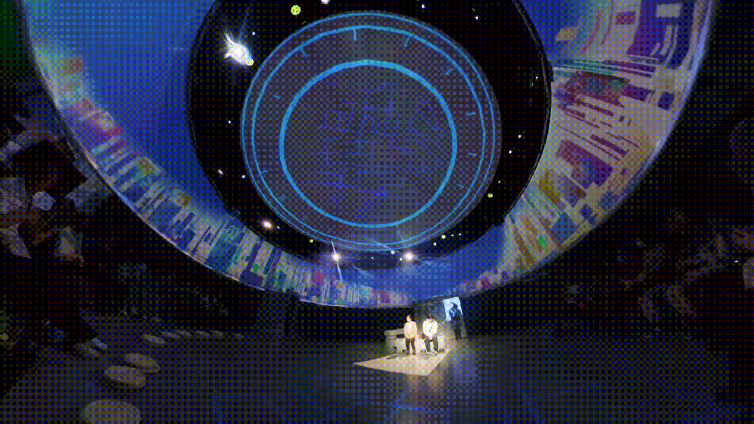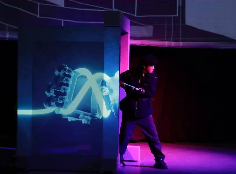 本剧创新性地运用全景投影、AIGC与实时影像技术。演员表演通过实时捕捉与AI风格化处理,与虚拟影像无缝切换,实现了现实和虚拟同台互动。环绕声场的渲染,使观众能够清晰感受角色对白与电子音效,带来前所未有的观剧体验。