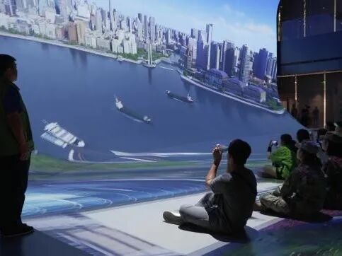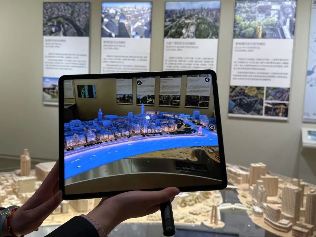 在参观过程中,团队重点关注了展示馆如何运用增强现实、虚拟现实和人机交互等技术,多角度、动态化地再现外滩历史建筑与相关文化景观。其中,“日出江花 春来江水——沪派江南特色村落营造试点设计主题展”尤为引人注目。该展览通过数智化手段呈现江南村落的整体风貌与空间营造逻辑,为团队提供了将乡土文化与现代设计理念融合的具体启示。