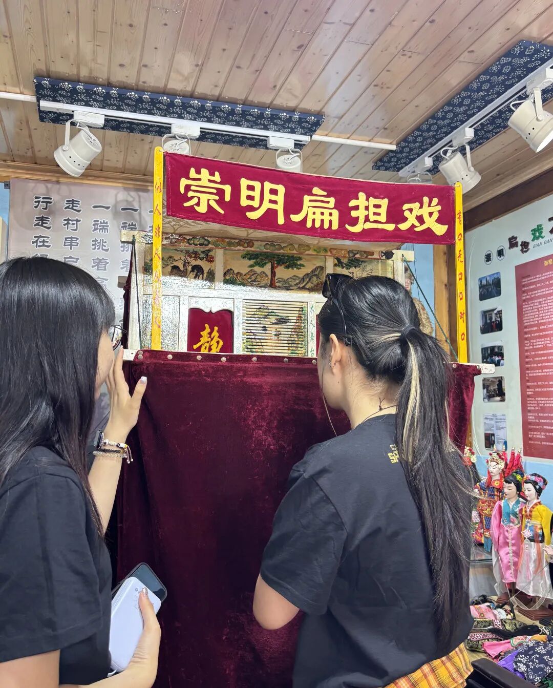其中,崇明扁担戏被誉为“一副扁担一台戏,一人演戏百人看”,是上海市级非物质文化遗产。这一独特的布袋木偶戏表演形式,艺人需在幔帐后同时操纵木偶、敲击乐器并完成唱念做打,技艺复杂,堪称“一人成一班”。然而,根据调查问卷显示,随着时代变迁,该剧种正面临演出市场萎缩、观众群体流失和传承断层等多重压力。尽管“非遗进校园”等活动在一定程度上推动了其传播,但缺乏长效机制,尚不足以扭转传承困境。为此,团队多次走访传承人朱雪山,深入了解其技艺精髓,并就如何在坚守传统的基础上实现创新发展展开交流。