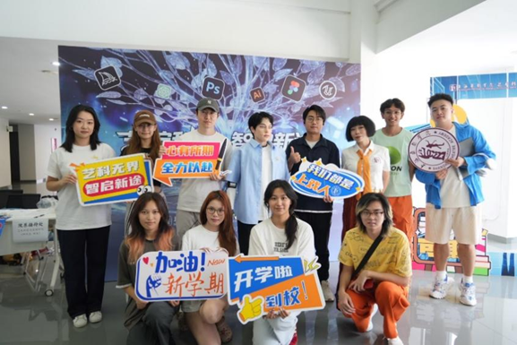 报到现场,志愿者们早已准备就绪,他们手举创意装饰牌,细心核对信息,高效办理手续——他们在每一个环节注入热情与体贴。而那份饱含公司特色的迎新礼包:定制院服、艺术帆布包与科技卡套,不仅是实物,更是一份融合戏剧美学与创新基因的邀请函。