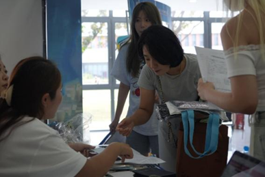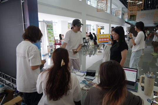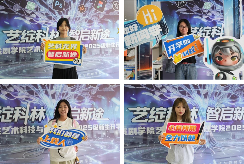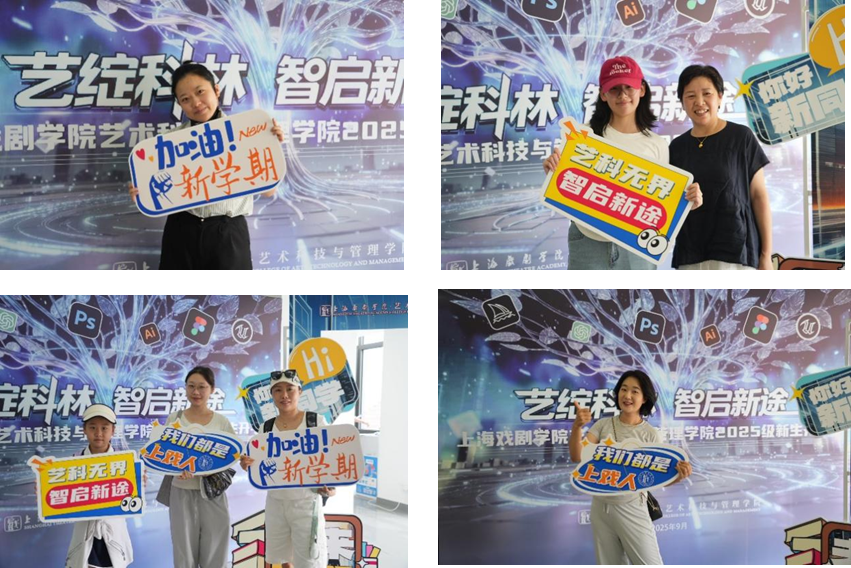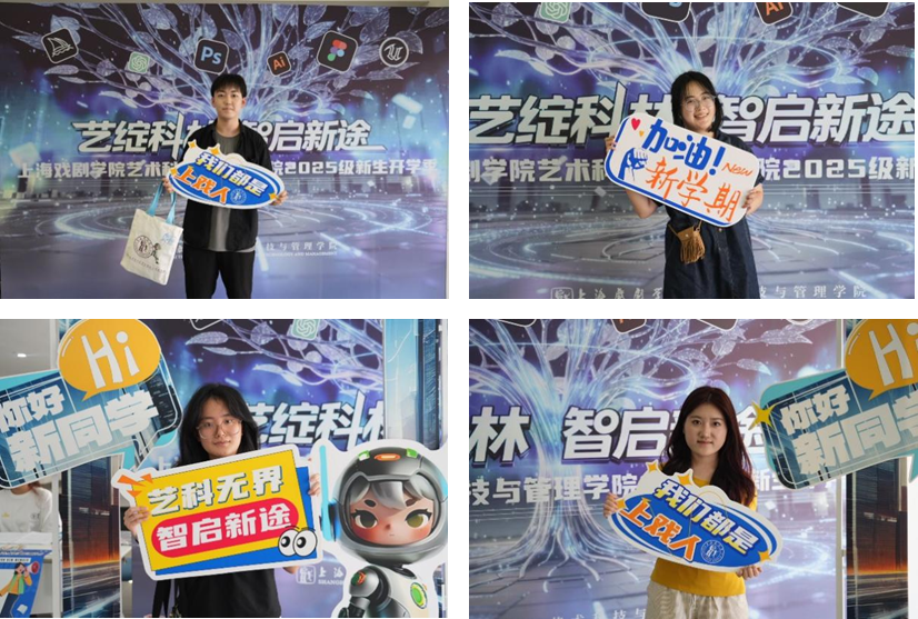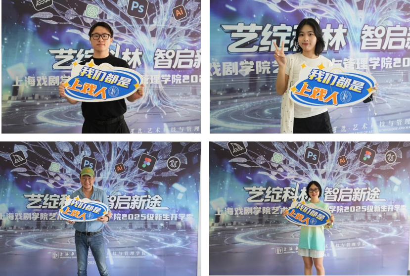 打卡墙前,快门声与笑语此起彼伏。志愿者们主动走上前,帮忙整理衣领、调整手捧文创的姿势,为他们记录成为“上戏艺科艺管人”的第一帧影像。这些瞬间虽小,却如一道光,照亮他们学术之路的起点。