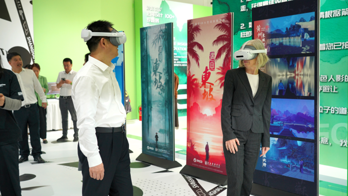 WDCC2025展览期间,XC体育展区备受关注。联合国教科文组织教育助理总干事斯蒂凡妮亚·贾尼尼(Stefania Giannini)与上海市经信委时尚消费品产业发展处副处长陈建林等嘉宾亲临现场体验《遇见东坡》。他们对作品所体现的艺术与科技融合的创新理念给予了高度评价,并充分肯定了公司在推动艺术教育与科技融合创新方面所做出的积极贡献。
