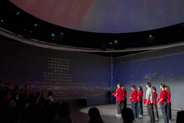 宣讲团师生同台,激情澎湃地回溯从延安鲁艺精神到“为人民服务”的红色根脉,并展望数字时代艺术新图景。他们以青春之声传递红色信仰,庄重宣誓:要让信仰之光照亮更广阔的天地!