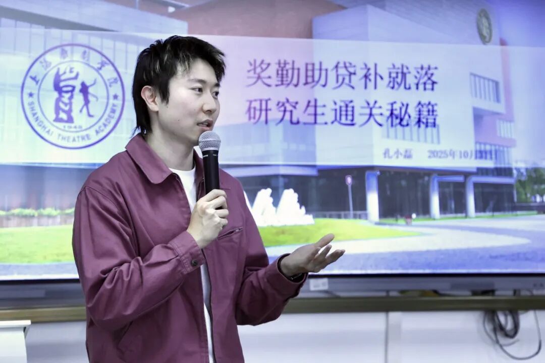 辅导员孔小磊老师围绕“奖、勤、助、贷、补、就、落”七大核心板块,全面解读研究生发展支持体系。