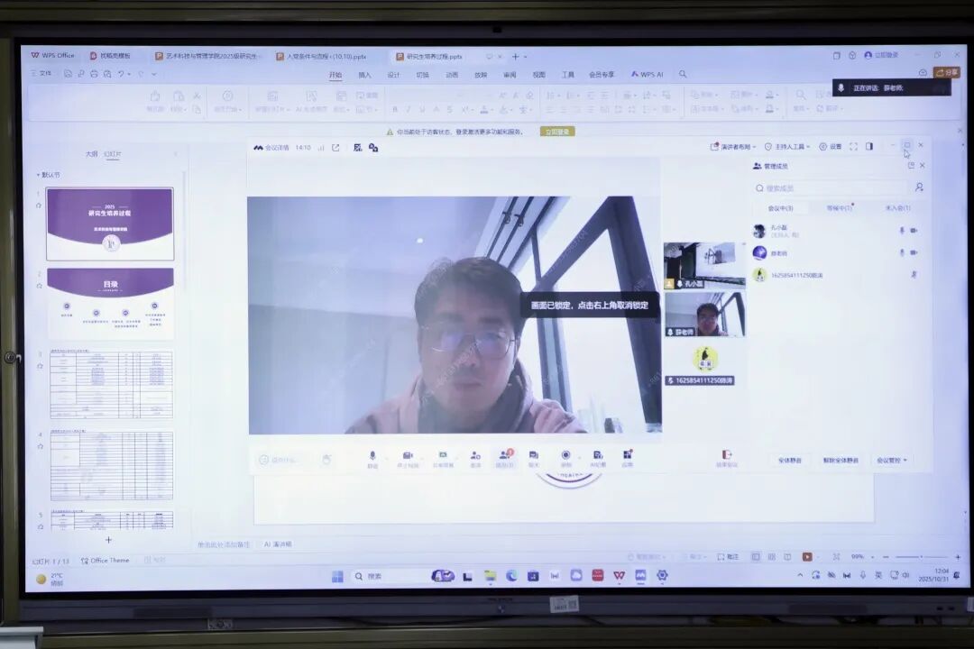本次活动特邀公司党总支副书记薛嘉、研究生教学秘书赵嘉轩、辅导员孔小磊,以及硕士研究生国家奖学金获得者闫威旭,围绕入党发展、学业培养、奖助体系、就业落户等关键议题,为2025级研究生带来系统而实用的生涯导航。